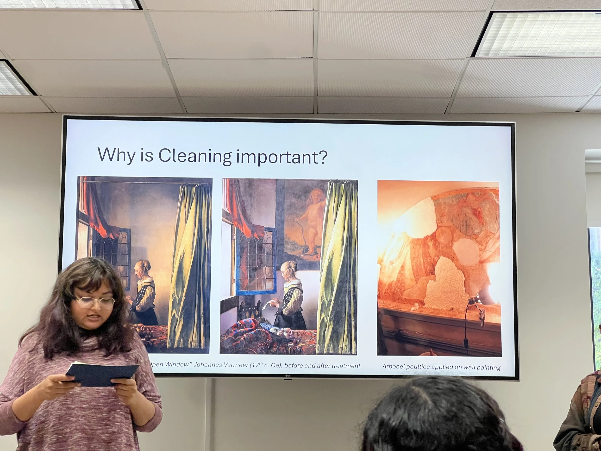 In this workshop, I learned the fundamentals of conservation practice, beginning with ethics and professional values, then progressing to examination, object handling, and writing condition reports. The main project was a week-long assignment that involved object assessment, research, a conservation proposal, and a short presentation. I got hands-on experience with photo documentation, lighting setups, and standard analytical methods. Later sessions covered treatment decision-making, cleaning, loss compensation, preventive conservation, and material identification. The workshop also addressed conservation’s role within broader institutional, cultural, and ethical contexts, with discussions of diversity, career pathways, and advice on graduate school and internships. Site visits to institutions such as the Getty Museum and LACMA, along with programs on Native voices, preservation during crises, and repatriation, highlighted conservation’s connection to communities and institutional responsibility.
